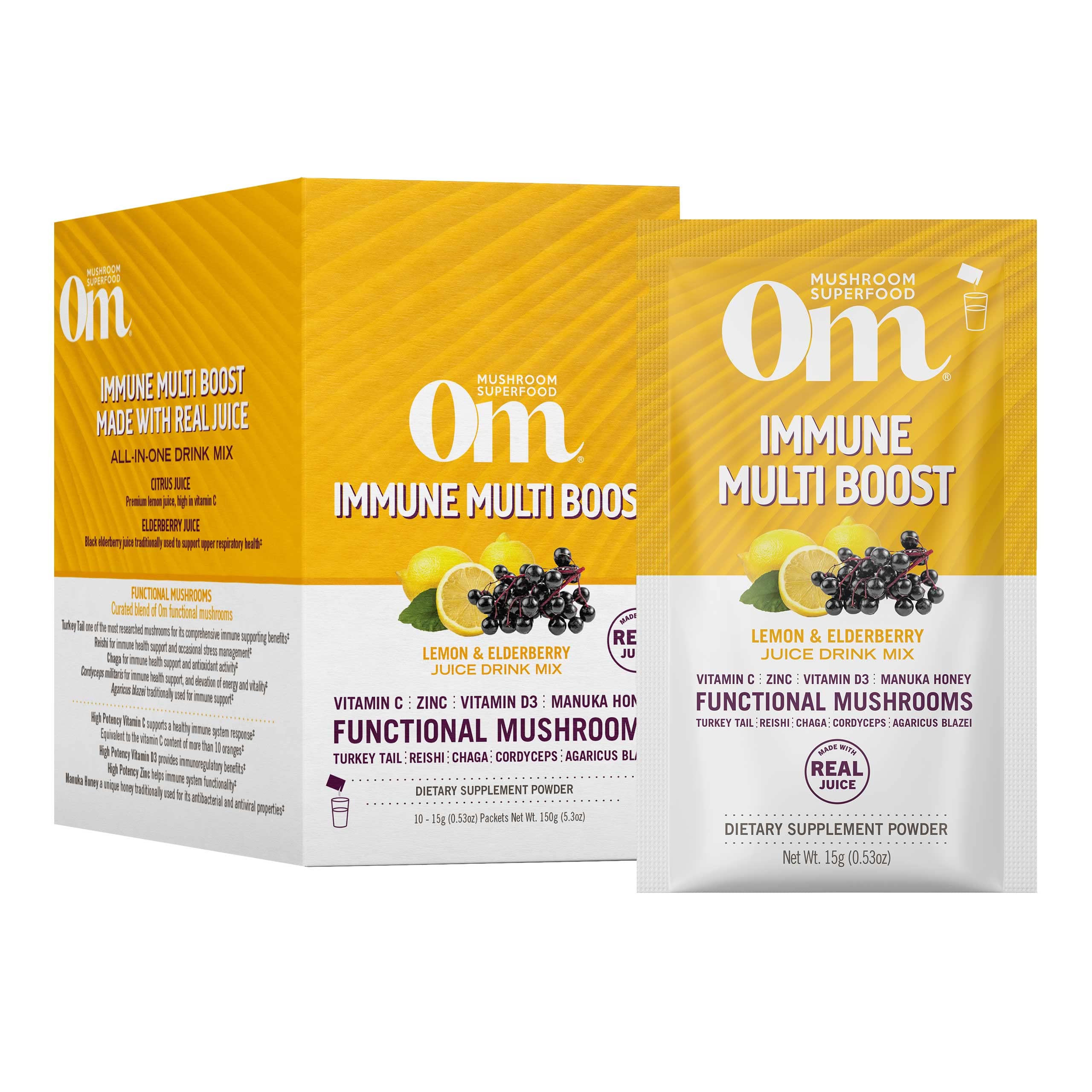 Amazon Com Om Mushroom Superfood Immune Multi Boost Lemon Elderberry Single Serve Mushroom Blend Cordyceps Reishi Turkey Tail Chaga Vitamin C With D3 And Zinc Immune Support Supplement Pack Of 10
